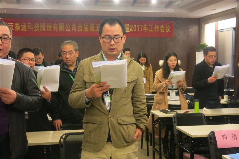 大會伊始,公司董事長吉榮新作了題為《新規(guī)則、新思想、新起點、新泰通》的2017年工作報告,提出了“一個總體思路、五項主要目標(biāo)、十大重點工作”。報告從經(jīng)營拓展、研發(fā)創(chuàng)新、管理提升、泰通家園等四個方面總結(jié)回顧了公司2016年取得的主要工作成績,從經(jīng)營目標(biāo)、服務(wù)目標(biāo)、研發(fā)目標(biāo)、建設(shè)目標(biāo)、管理目標(biāo)等5個維度指明了2017年的工作方向,從體系建設(shè)、戰(zhàn)略規(guī)劃、預(yù)算管理等10余方面周密部署了2017年度重點工作,為實際工作的開展提供了有力的抓手,報告內(nèi)容全面、數(shù)據(jù)詳實、催人奮進,參會的全體代表倍感鼓舞!